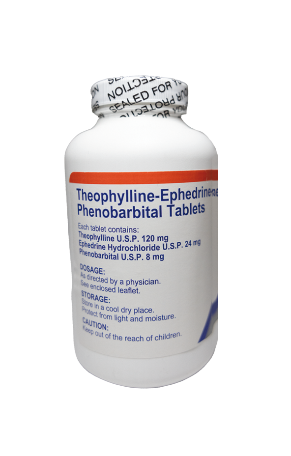 Theophylline Compound is a combination of two bronchodilators (ephedrine and theophylline) and the sedative, phenobarbital, in a solid dosage form.